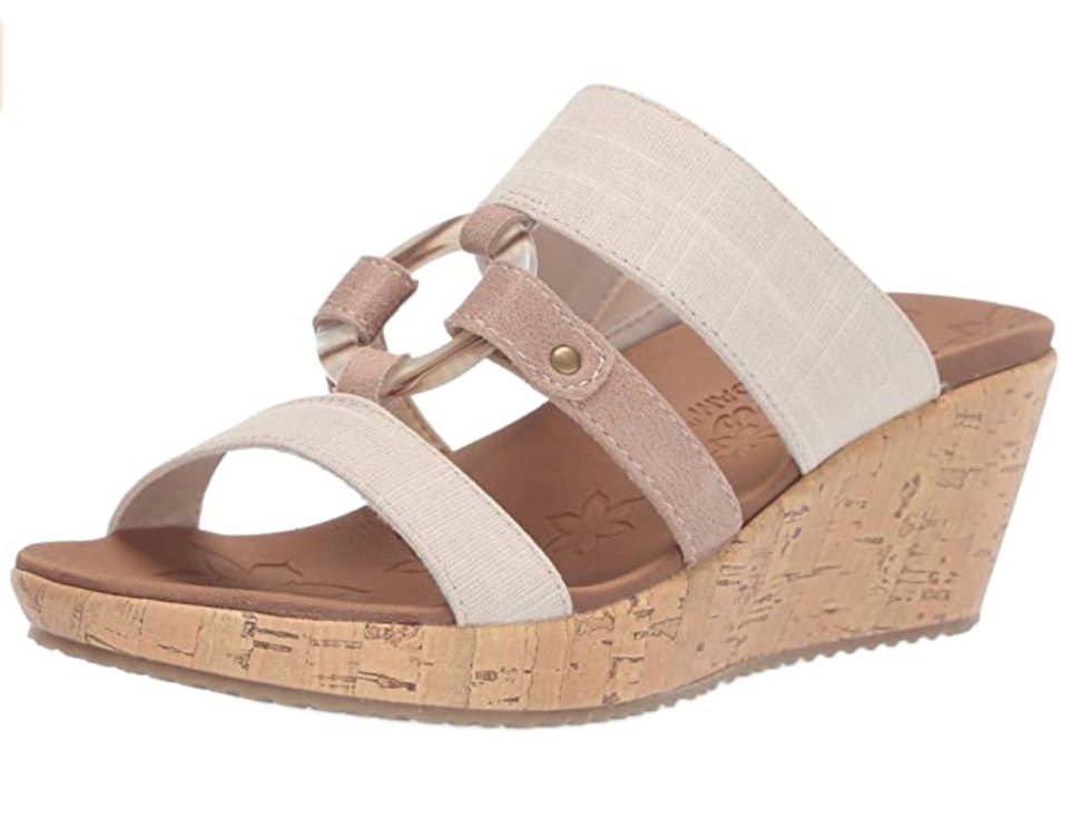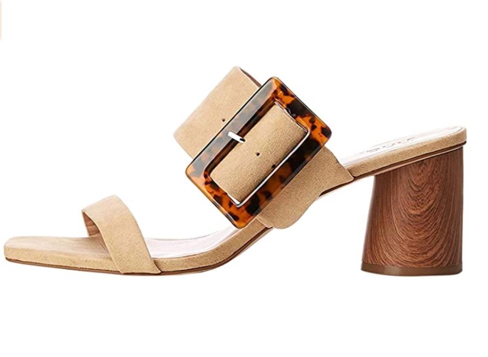 This camel-colored slide with a tortoise buckle is just too beautiful to believe. This shoe, from an Amazon brand called Find, is just begging to be worn with a flowy, summer dress. And the thicker, block heel makes it way easier to wear all day long. It also comes in black, if you're looking for something that looks a little more formal. Either way, you're going to want to flash these sandals at brunch.This Cork Slide Sandal That Gives You Lots Of Height