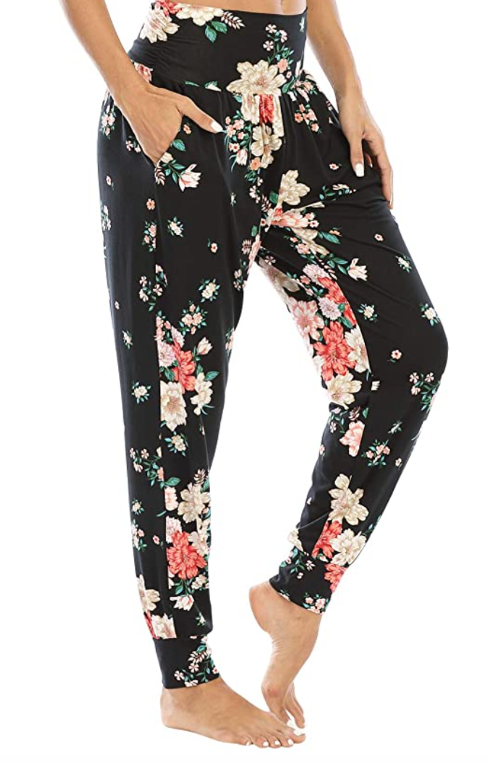 Now let's take a look at some adorable loose flower-print sweatpants! If you want more pizzazz in your sweatpants than plain solid colors can provide, these will surely do the trick.Aibrou Sweatpants for Women