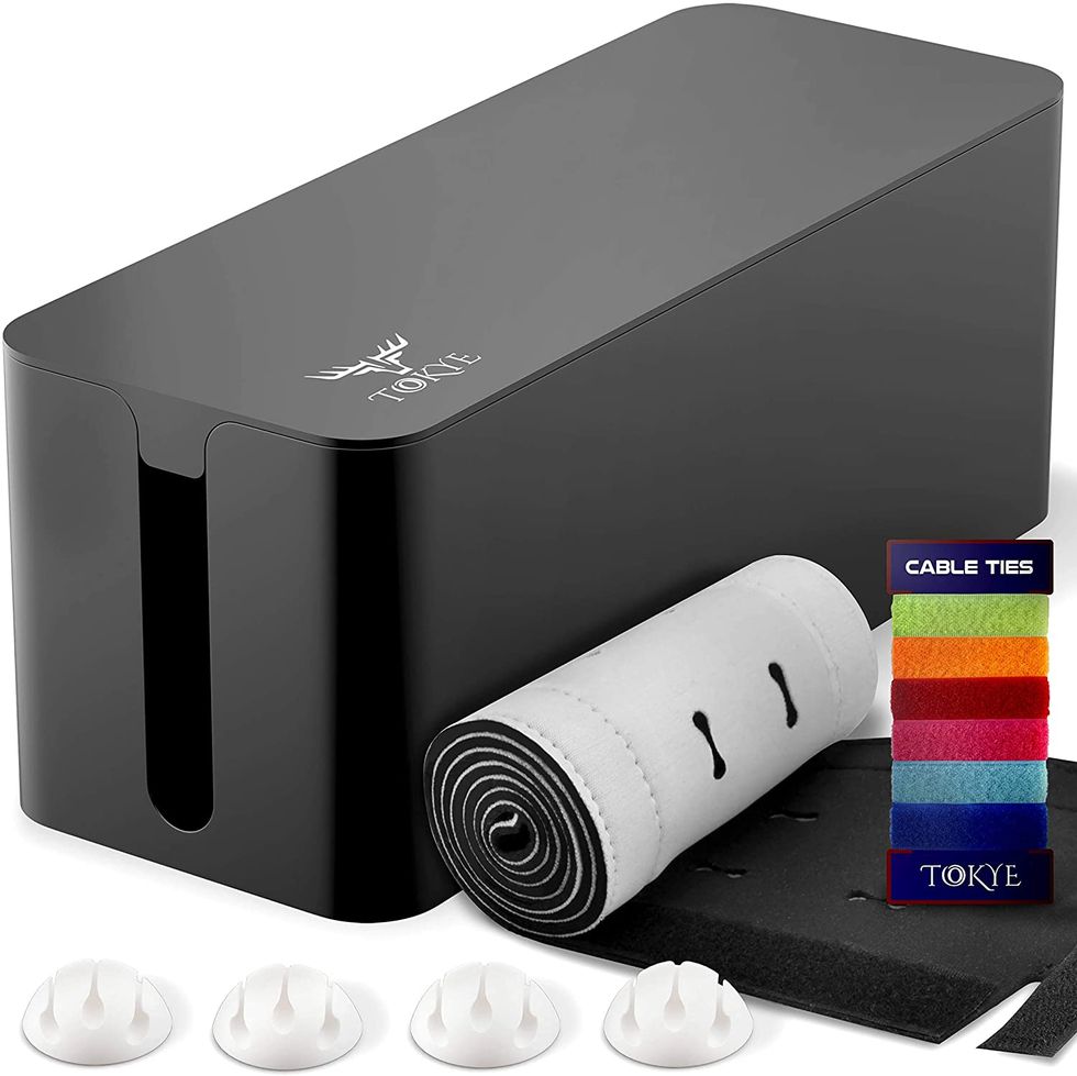 This version of the cable organization system doubles as both organizer and storage; it has a one-piece design that allows you to store multiple cords within it and prevent anything from hanging out in the open. It also contains 9 cable channels for you to run your cords through, so you know there's plently of space there!