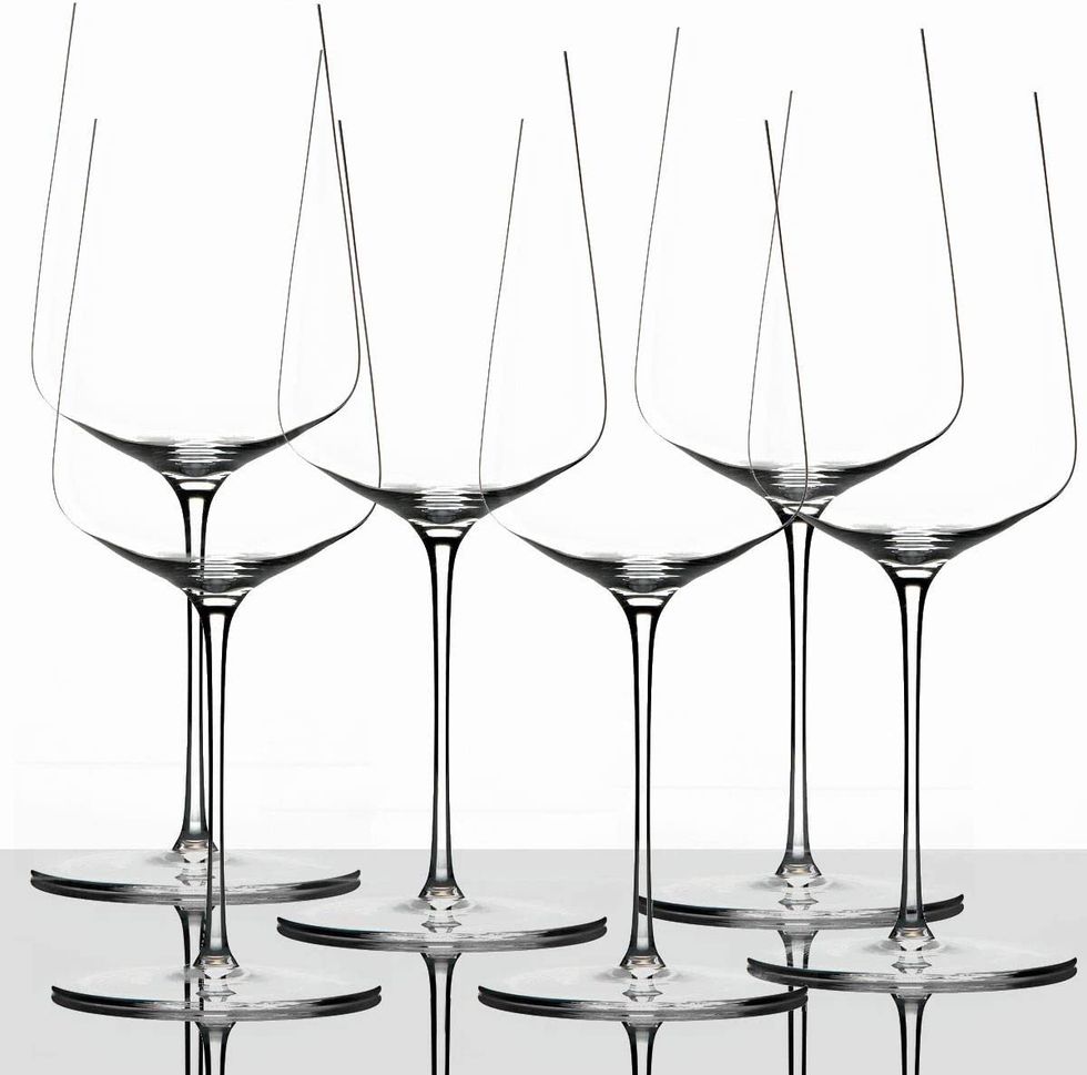 Looking for the best bang for your buck? The Riedel Ouverture Wine Glasses are it. Basically, you'll pay for nine cheap wine glasses and get three free. Each set includes four white wine glasses, four red wine glasses, and four champagne glasses. Don't worry: Each one is completely dishwasher safe.Zalto Denk'Art Universal