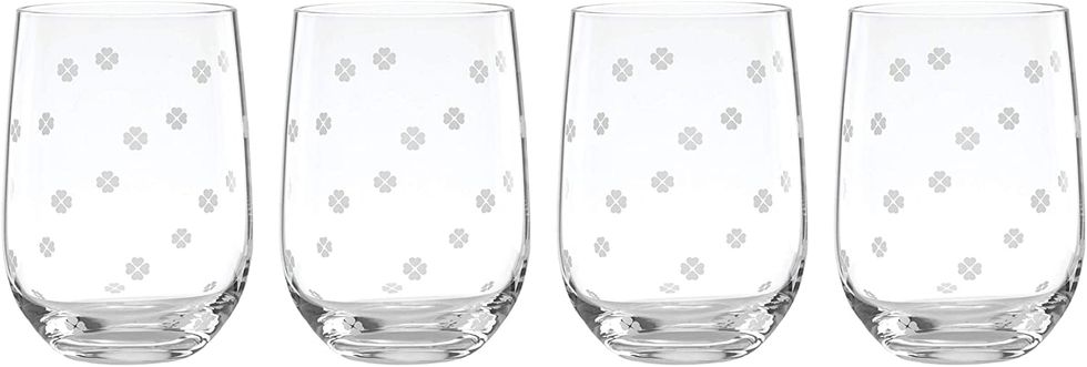 If you're working with a larger budget, we would go with the Zalto Denk'Art Universal wine glass set. Not only is this option strikingly beautiful, but these glasses are also highly durable. Designed for full-bodied, powerful wines, these glasses are the perfect indulgence for regular wine drinkers.Kate Spade New York Spade Clover 4-piece Stemless Wine Glasses