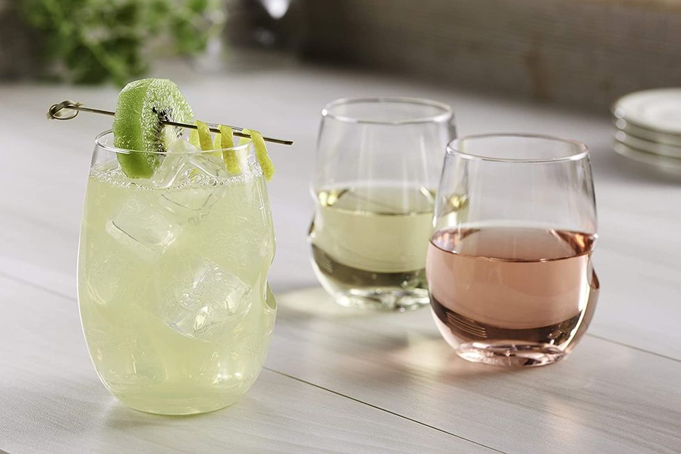 Searching for a funky set of wine glasses to complement your modern kitchen? The Mikasa Cheers White Wine Glasses are a popular choice on Amazon, highlighting whimsical, festive designs on each glass. Even better, you'll never question which glass is yours so long as you remember what patterned cup you're drinking from.Trending