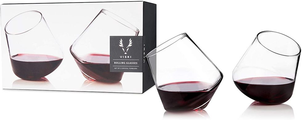 One of our favorite red wine glasses, the Viski Raye Angled Burgundy Set is a must-buy. Not only is this wine glass set affordable at just under $20, but it's also one of the most stylish choices on our list. With a unique angled shape, it's safe to say this set is nothing short of iconic.Viski Rolling Wine Angled Crystal Glass Tumblers