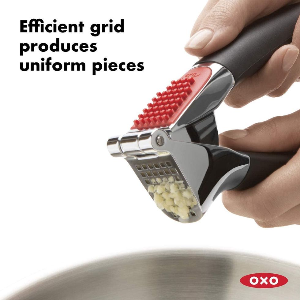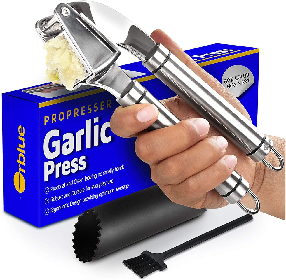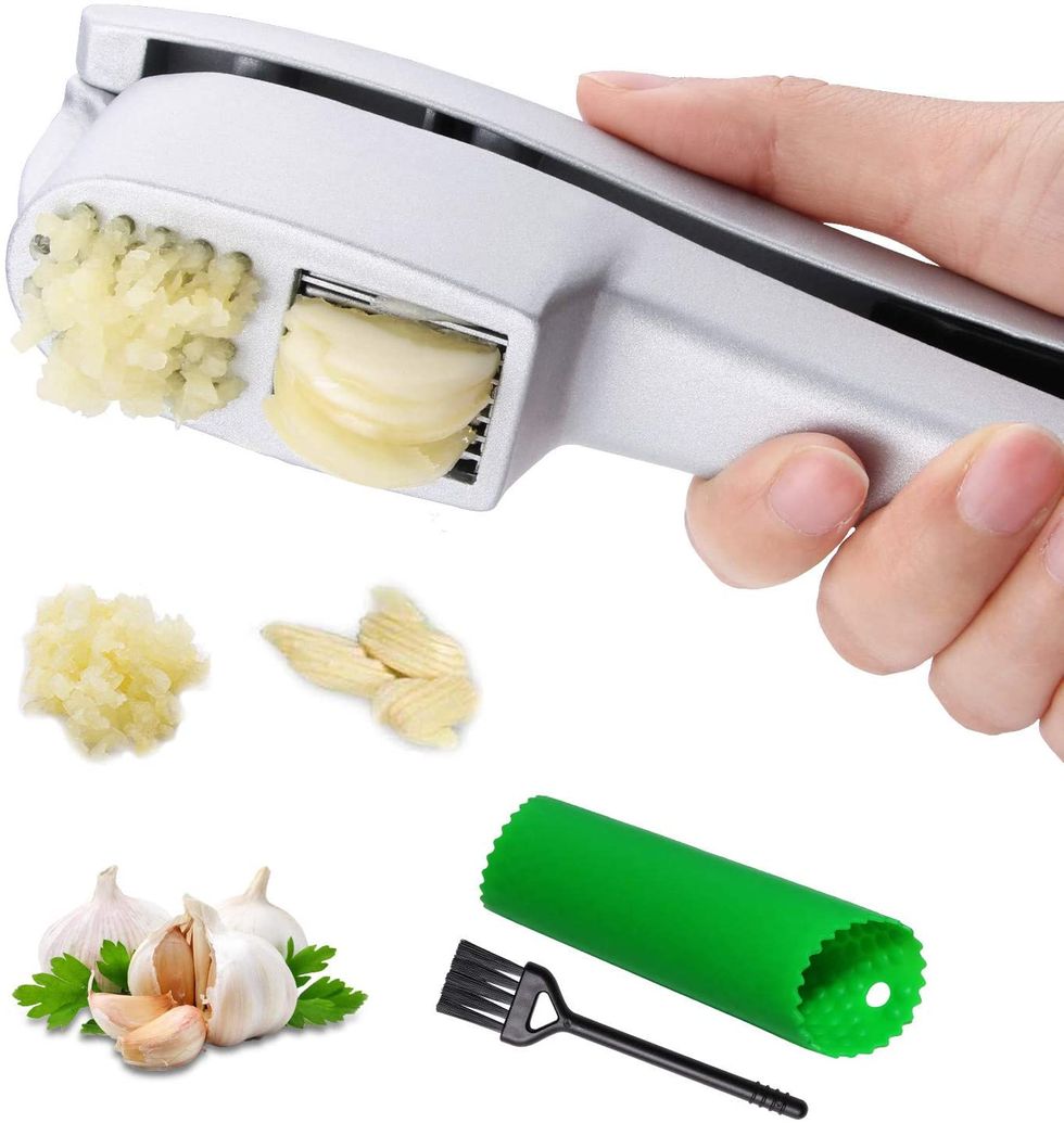 There's no question why the Orblue Garlic Press is considered one the best garlic presses on Amazon right now. With more than 5,000 positive reviews, this tool is a must-purchase for every home cook. With a convienent, durable, and ergonomic design, mince unpeeled garlic cloves with almost no effort.Kitchen Innovations Garlic-A-Peel Garlic Press