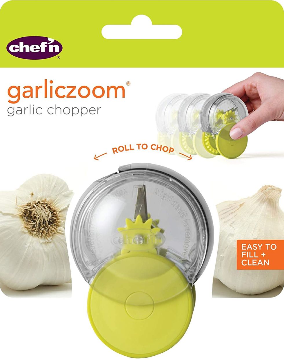 What's the easiest way to mince garlic? With the OXO Good Grips Soft-Handled Garlic Press, of course. Featuring a large-capacity garlic clove chamber, this tool will allow you to maximize the amount of garlic you press every time you're in the kitchen. Even better, a built-in cleaner pushes out garlic peels.Chef'n Garliczoom Garlic Chopper