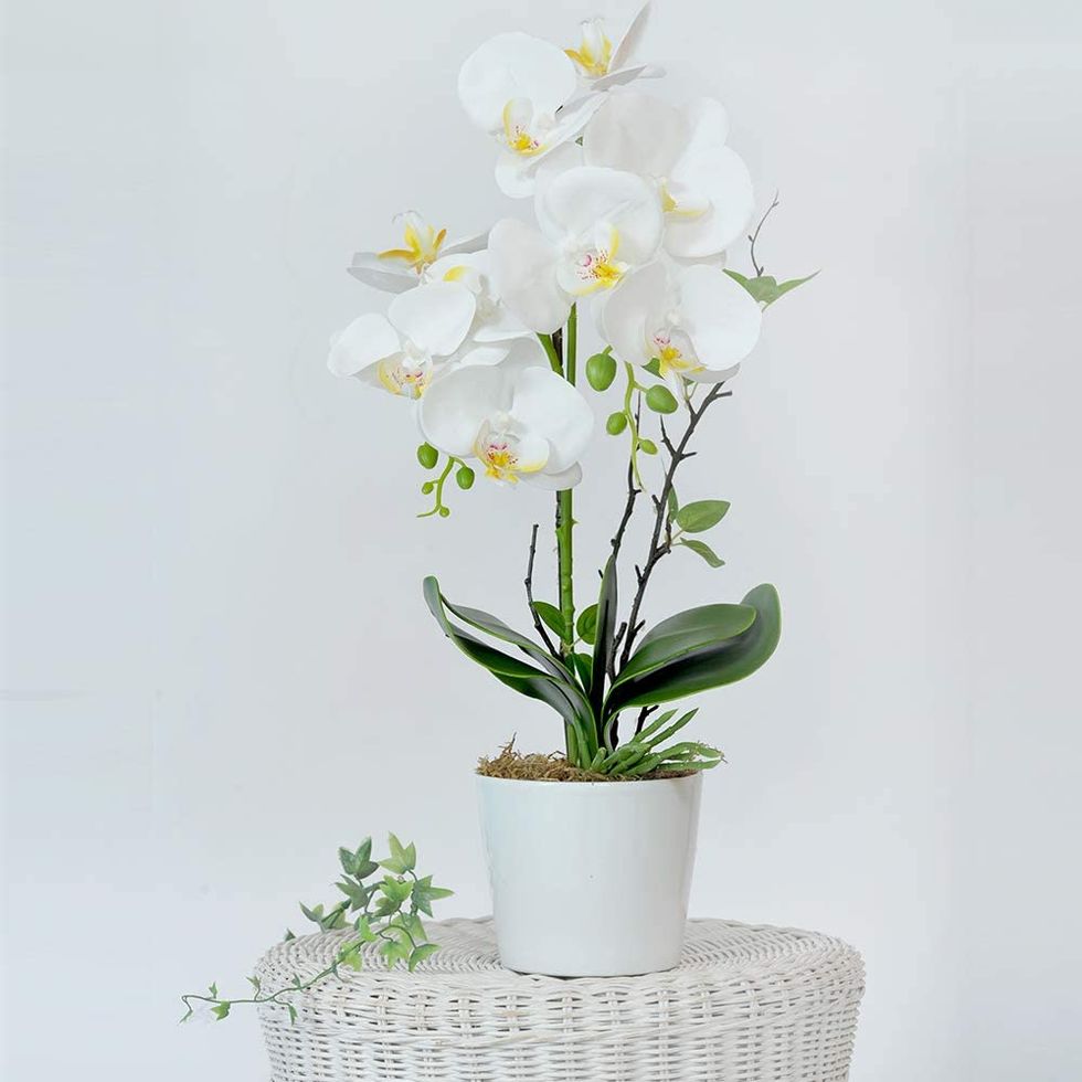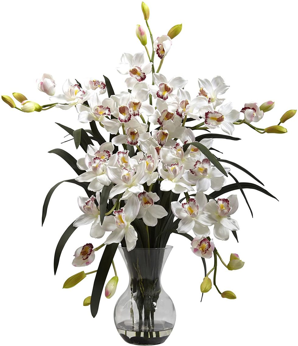 Real or fake? This Nearly Natural Large Cymbidiumis so beautiful, it's hard to tell the difference. It's among our favorite artificial plants for home decor, thanks to its life-like flower buds and leaves. The fake water is a nice added touch, too.