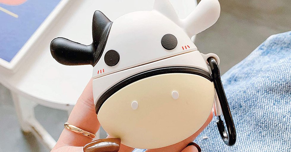 You don't have to like cows just to use this case — all you have to do is own a pair of Airpods. It's shockproof as well as compatible with the first and second generation of Airpods, plus it'll keep your headphones protected from dust. And because it comes with one carabiner included, it was super-easy to clip onto my bag.