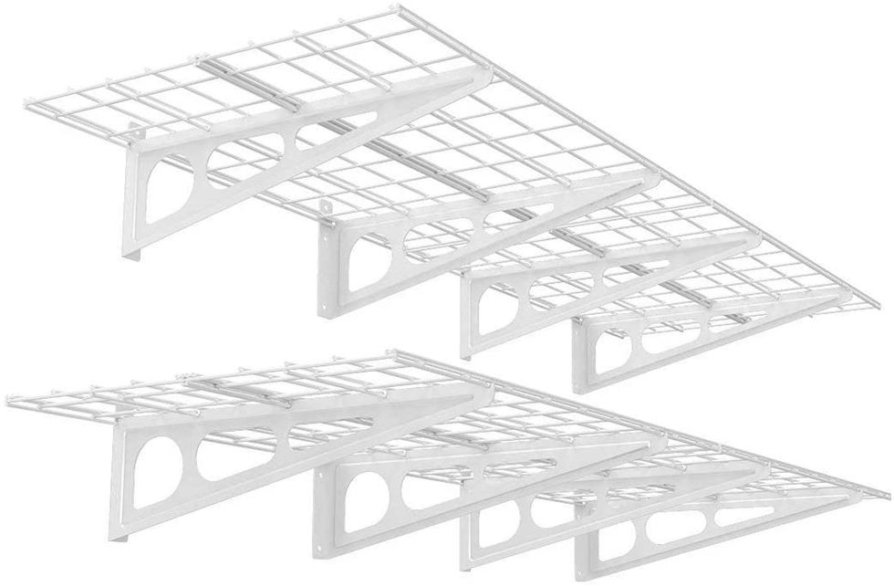 Maximize your garage or garden shed with these FLEXIMOUNTS 2-Pack Wall Shelf Garage Storage Rack Floating Shelves in White. They attach directly to the wall so they take up minimal space, and the clever mounting design adds stability and prevents buckling. They also come in a variety of size and color options.