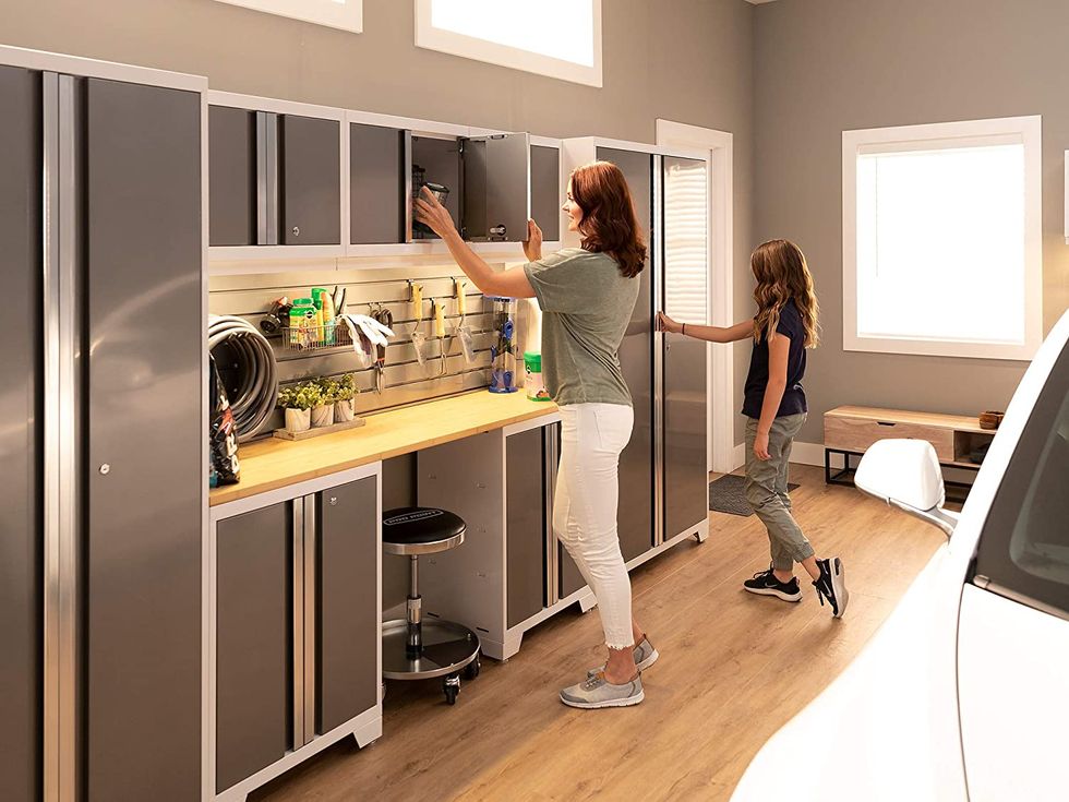 This Rubbermaid Double-Door Storage Cabinet is a sleek and stylish spin on traditional garage storage shelves. It snaps together quickly and easily without any required tools or hardware, and the lockable design gives you peace of mind when storing valuables or expensive tools and equipment.