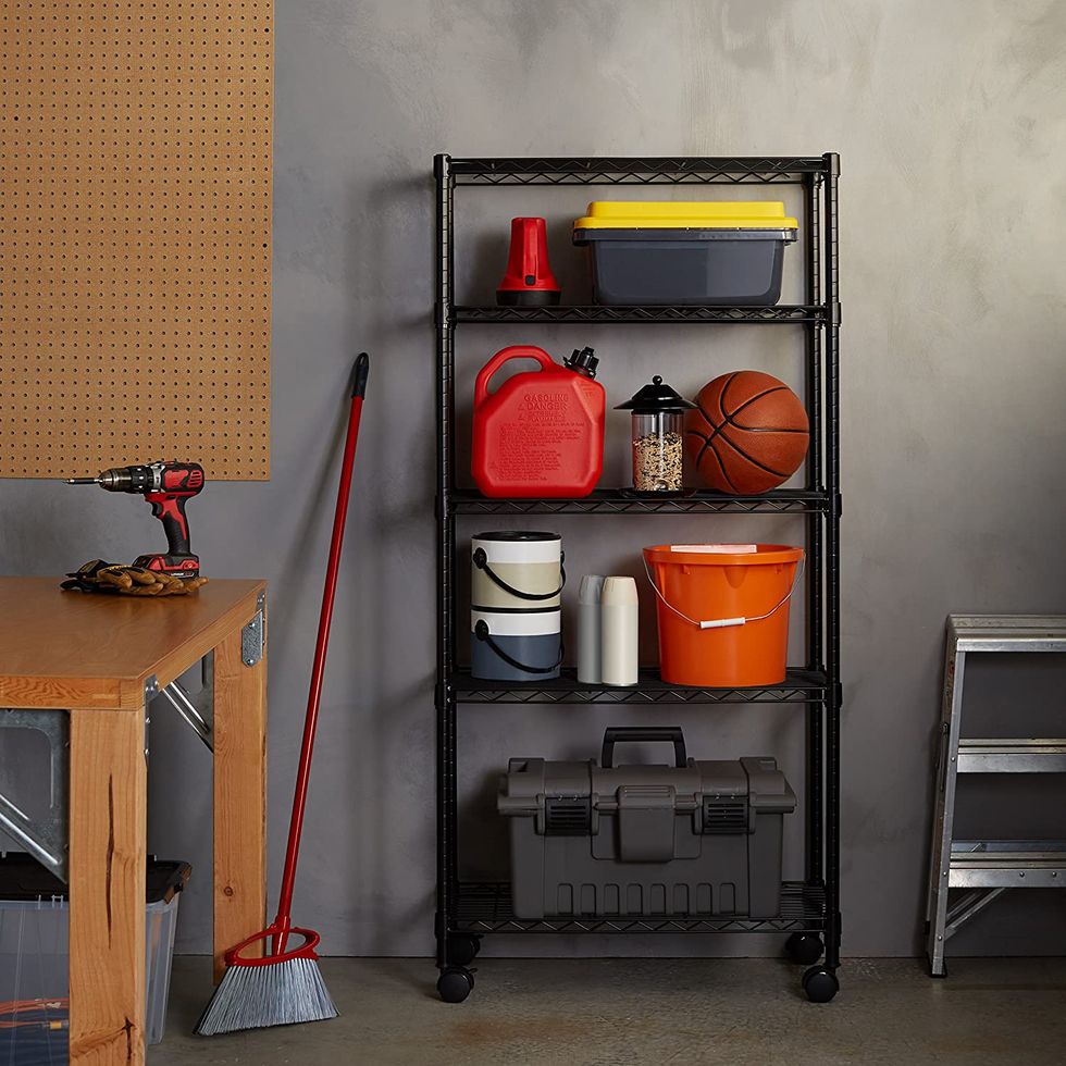 This AmazonBasics 5-Shelf Shelving Storage Unit on Wheel Casters is a customer favorite, and it's not hard to see why. Over 17,000 people can't say enough good things about the quality construction, low price, and quick assembly. The convenient wheels on the bottom make it easy to move to different parts of your garage.