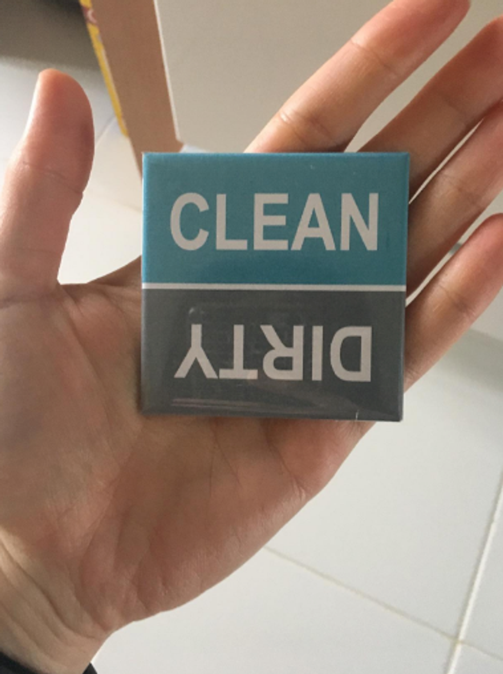 "Are these clean or dirty?" You've asked the question of yourself (or your family members and roommates) countless times. Put an end to the wondering with this magnet. Put the clean side up when the dishes are clean, and the dirty side up when they're dirty. Voila!Keep Splatters at Bay with a Splatter Screen