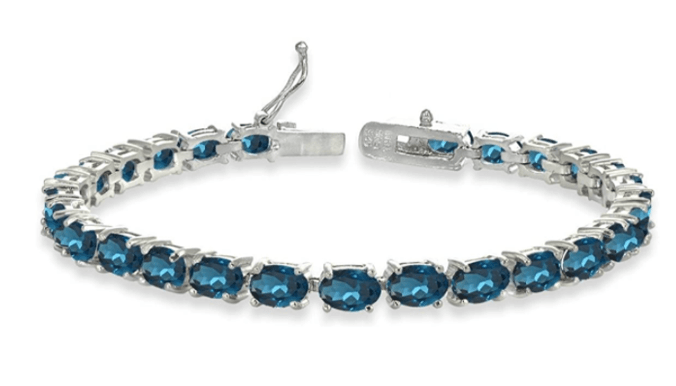This Sterling Silver Genuine, Created or Simulated Gemstone Oval-cut Tennis Bracelet is both bold and beautiful. The London blue topaz stones are a deep blue color that makes a striking statement. The sterling silver setting is tarnish-and-nickel-free so it stays looking new year after year.Best Tennis Bracelet with Matching Earrings