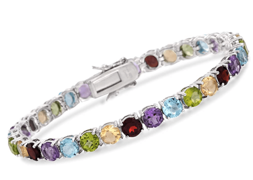 Can't decide on one color of gemstone for your tennis bracelet? With this Ross-Simons 18.60-19.90 ct. t.w. Multi-Gemstone Tennis Bracelet in Sterling Silver you don't have to choose. This one-of-a-kind bracelet includes amethyst, citrine, garnet, peridot, and topaz stones for a truly breathtaking result.Trending
