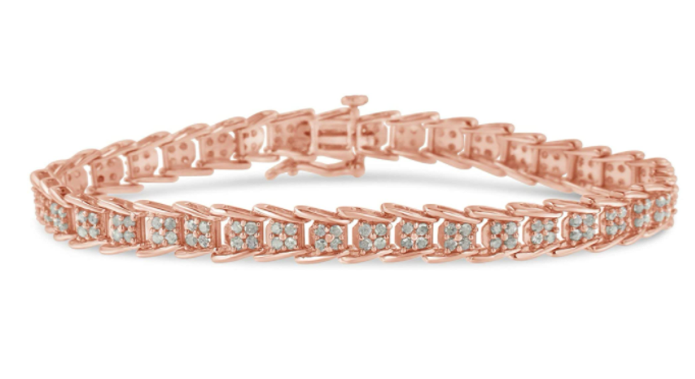 If you haven't gotten in on the rose gold trend yet, this .925 Sterling Silver 2.0 Cttw Diamond Nested Link 7" Tennis Bracelet is a lovely way to try it out. The fan-shaped design adds a unique touch and the 2.0 ct t.w. diamonds are hand-set for an artisanal look.Best Tennis Bracelet with Feather Details