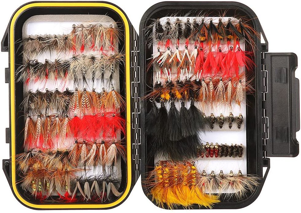 It comes with a variety of lure styles, including dry flies, wet flies, nymphs, emergers, and streamers. Everything is 100% handmade and designed to be as realistic and enticing to the fish as possible. Plus, the waterproof carrying case keeps them safe and secure until you need them.