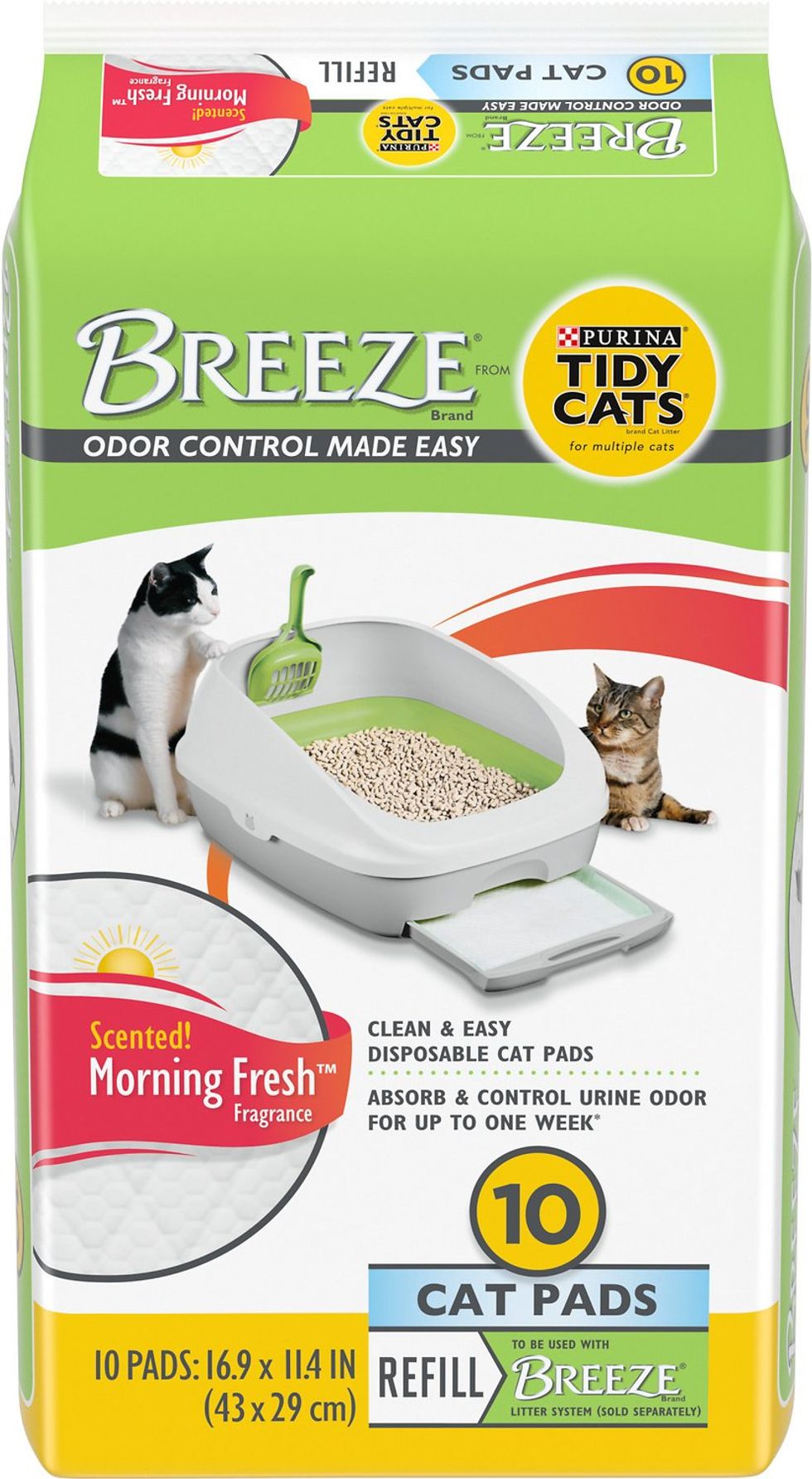These Tidy Cats Breeze Morning Fresh Scented Cat Pads come with 10 disposable cat liners. Get rid of your stinky old litter and swap them for the Tidy Cat Litter system.
