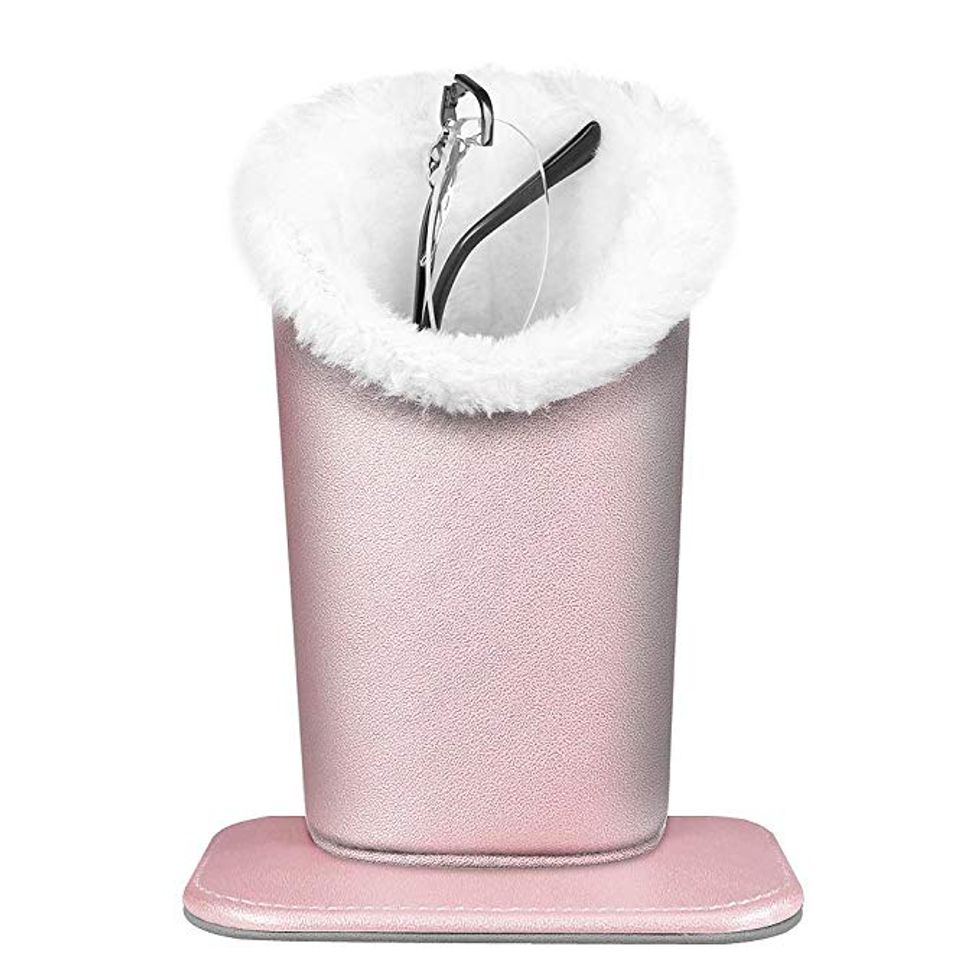 I have several family members who need this plush eyeglasses holder immediately. Perfect for bedside, desk, or bathroom, this holder has a weighted, magnetic bottom to help it stay in place, providing a soft landing for your glasses when you're not wearing them.