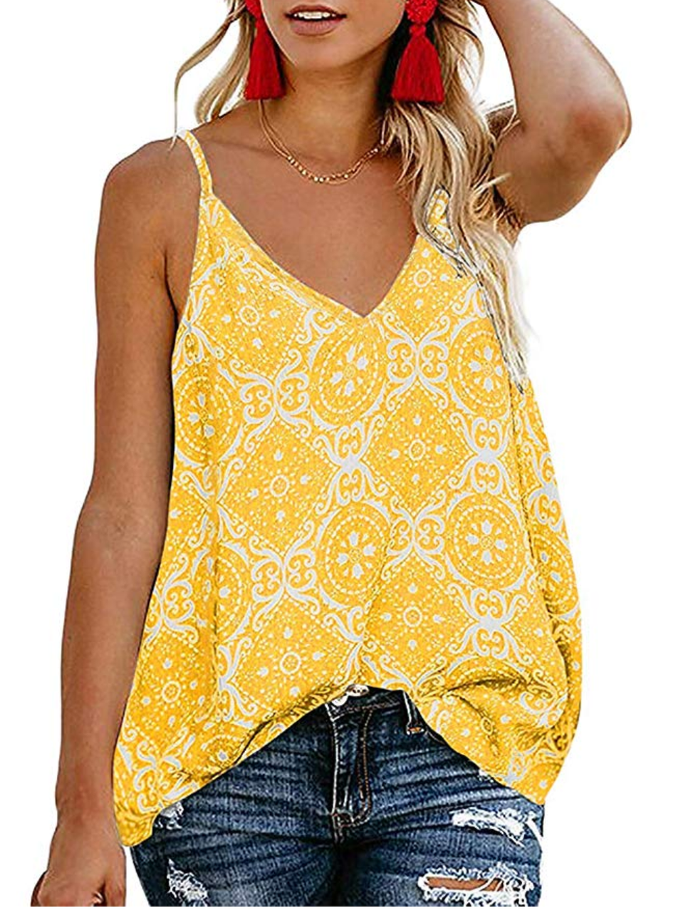 This flowy tank top comes in a bunch of colors and is so easy to wear since you can dress it up or down. The price is amazing, too.