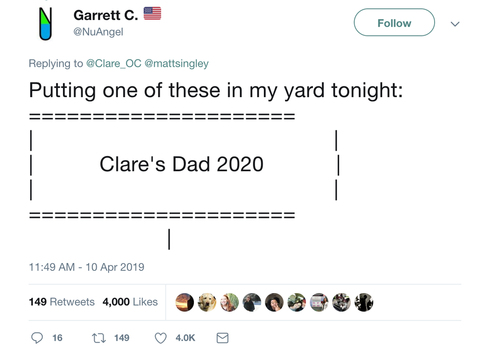 What do you mean you'd hire Claire's dad "for extreme motivational content tbh"? He's inspiring his daughter to not buy your product! That'd be like hiring the ice cream man to be your personal trainer. The guy has a vested interest in seeing you lose!