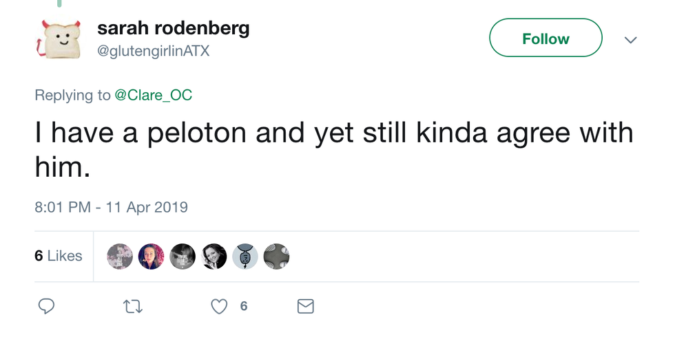 Well, as it turns out, the Peloton might not be the best use of Claire's money. Or really, anyone's money. There are some, how should we say, hang-ups to the Peloton experience.