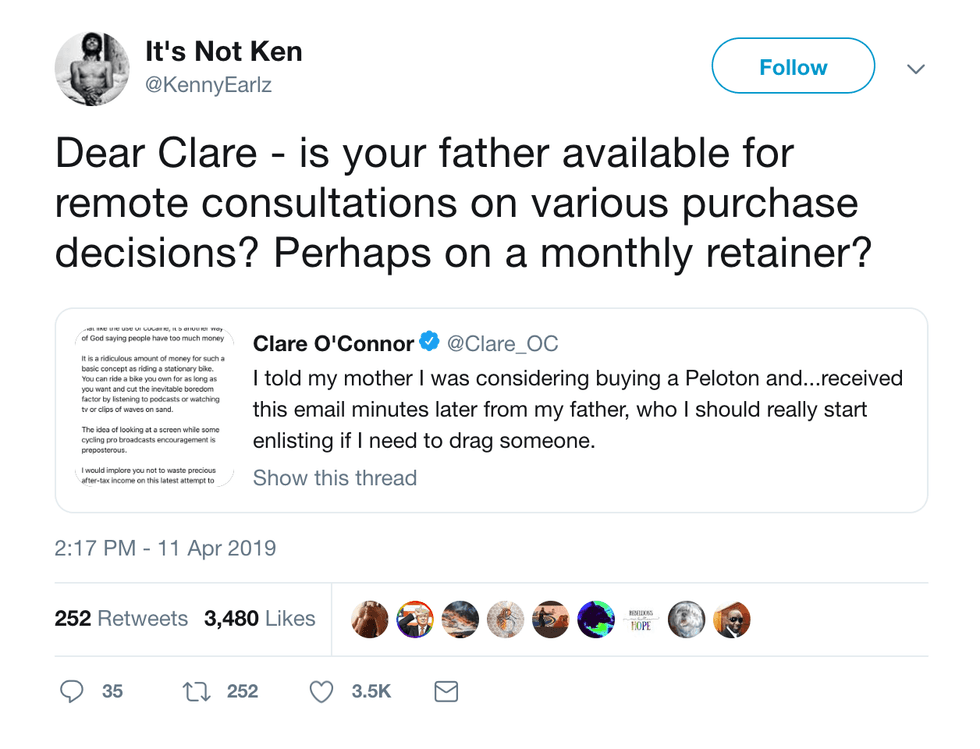 After Claire O'Connor finished her taxes, she had a hole burning in her pocket from all that sweet, sweet refunded government moolah. Looking for something nice to buy herself, Claire found the uber-fancy Peloton Bike... a potential purchase her father did not find necessary.