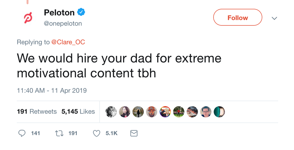 What do you mean you'd hire Claire's dad "for extreme motivational content tbh"? He's inspiring his daughter to not buy your product! That'd be like hiring the ice cream man to be your personal trainer. The guy has a vested interest in seeing you lose!