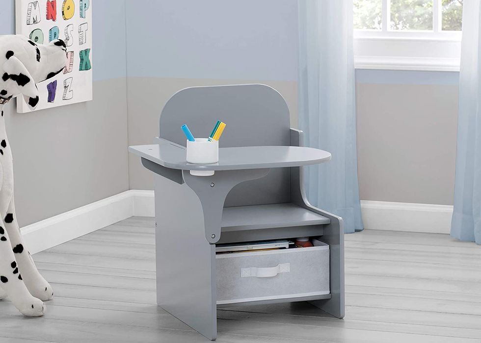 If you've got a younger child, you'll need a desk that's sized just for them. This Delta Children MySize Chair Desk with Storage Bin in Grey is designed for children three years and up. The cup holder is perfect for crayons and markers, and the under-seat storage makes it perfect for smaller spaces.