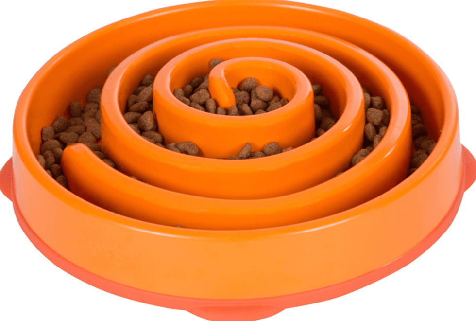 This one gives your pet some mental stimulation (and keeping them entertained is truly a challenge) while also slowing down the fast eaters out there. Here's some radical honesty: this kind of feeder has saved me a lot of time in not cleaning up vomit.What goes in must come out.