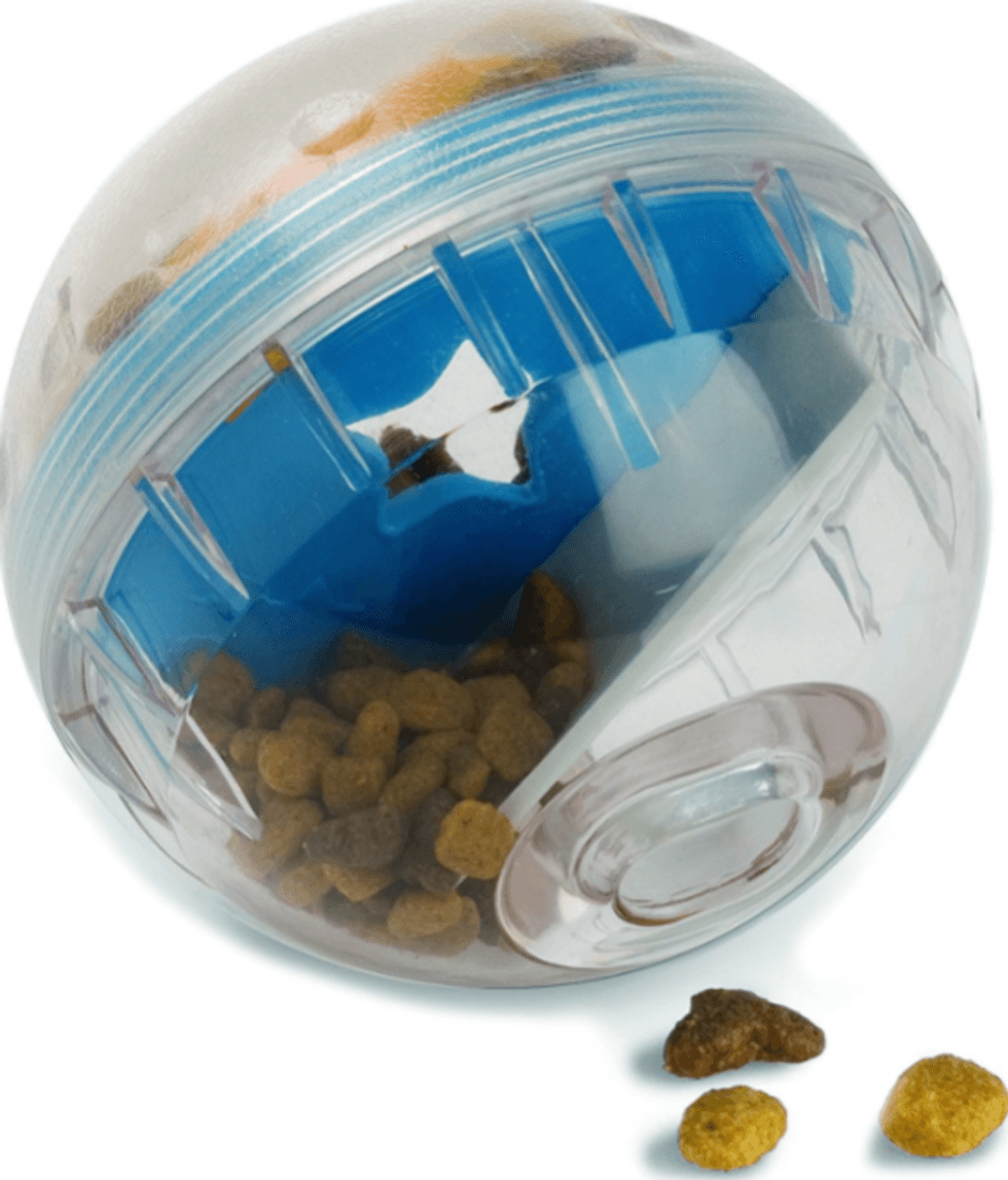 It's a simple ball but so much more. Your pet gets fed, but they also get endless entertainment as they whack the ball to get the food to come out. This one is perfect if you're about to enter an important call and need them to just leave you the heck alone for five minutes.There's even a version for cats.